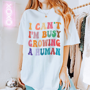 Préparez-vous à rire avec notre « T-shirt Funny Mom, je ne peux pas, je suis occupé à faire grandir un humain » ! Ce t-shirt est le moyen idéal pour montrer votre grossesse ou dire aux gens que vous êtes maman. Faites savoir à tout le monde que vous attendez d'une manière amusante et unique avec notre t-shirt amusant.