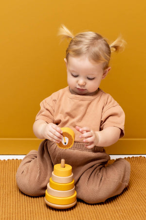 Un classique revisité avec une touche ludique ! Ce jouet à empiler en bois allie bois de hêtre naturel et couleurs gaies pour le plus grand plaisir des petites mains curieuses. Sa base arrondie offre un léger balancement pour plus de plaisir et aide votre enfant à développer sa coordination œil-main et sa motricité fine .