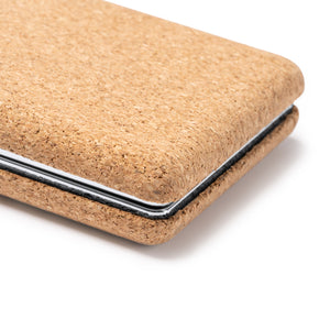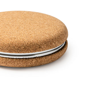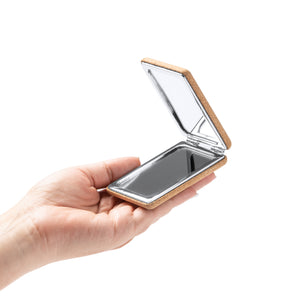 Reflect your unique style with our custom pocket mirror! This folding double-sided pocket mirror is made of eco-friendly cork and chrome-plated metal, with 1x/2x magnifying mirror. It is perfect for touch-ups on the go. Stay sustainable and stylish with every glance.