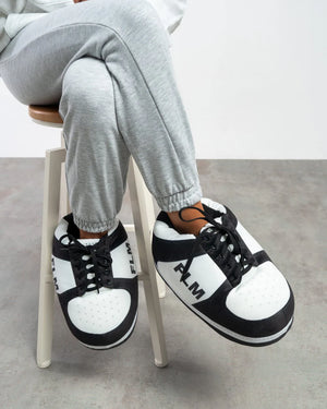 House slippers with an original and fun design. They're extra large, durable, and warm. Perfect for sneaker lovers!
