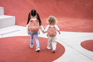 With this cute backpack your child is completely ready for any adventure or first trip to school! The backpack has adjustable and padded shoulder straps and a short handle at the top to easily hold and hang it everywhere you go. The chest strap prevents the shoulder straps from falling down. The backpack has a big compartment and a little front pocket, where you can nicely store a little snack or so. The main and front pocket have a zipper that allows children to easily open and close the backpack themselves. In order not to loose your traveling companion, a name tag is provided on the inside of the bag. Furthermore, the backpack is water repellent and can be washed in the washing machine in a gentle rinse. But be informed that the more you wash the bag, the less water repellent it will get.