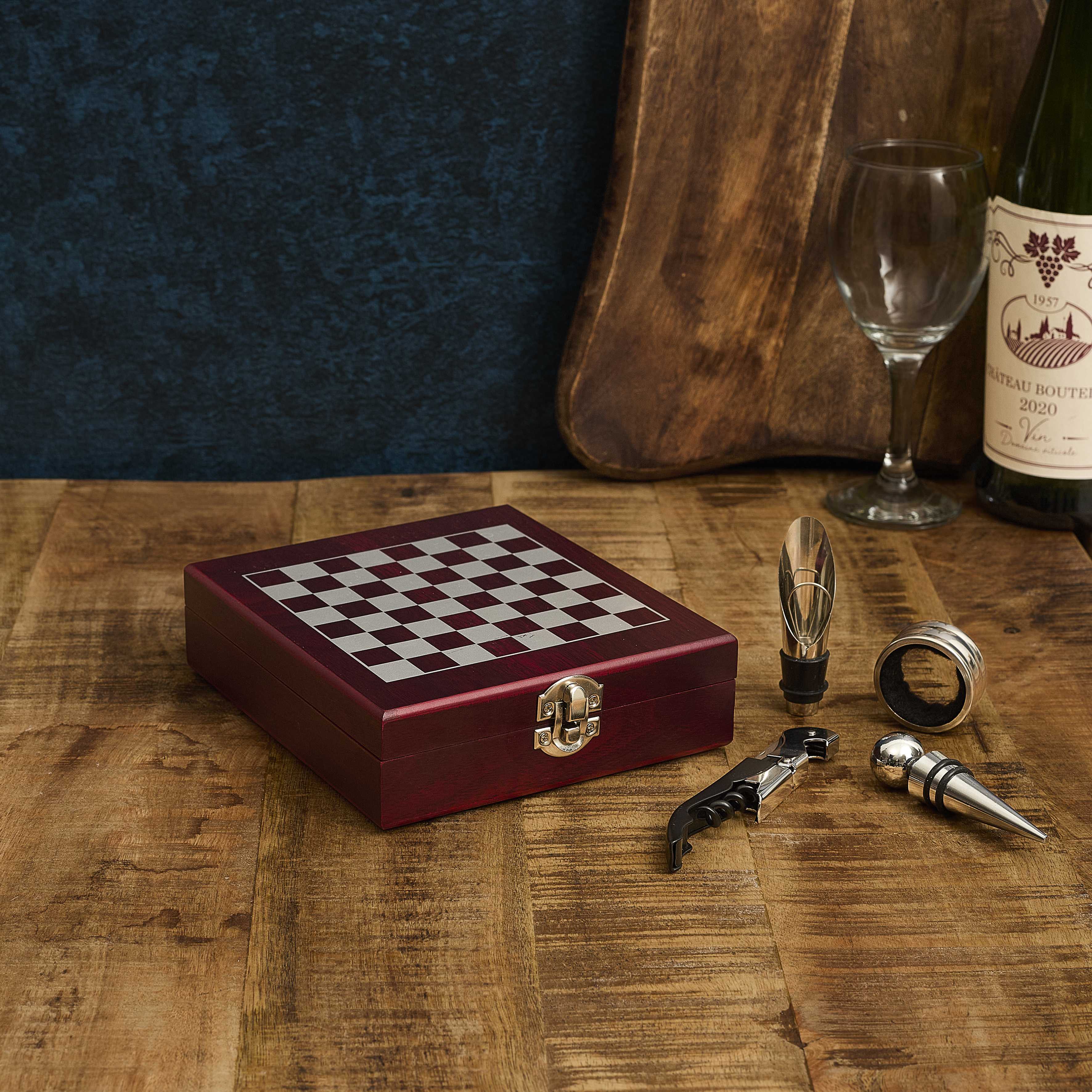 Set Sommelier & Jeu d’Échecs, Coffret Vin 4 Pièces avec Échiquier, Cadeau Élégant