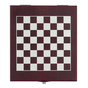 À l’intérieur, vous trouverez les accessoires essentiels pour savourer une bonne bouteille : tire-bouchon, bague anti-goutte, verseur et bouchon. À l’extérieur, le couvercle se transforme en véritable plateau d’échecs pour une partie improvisée entre amis, en famille ou entre amateurs de bons crus.