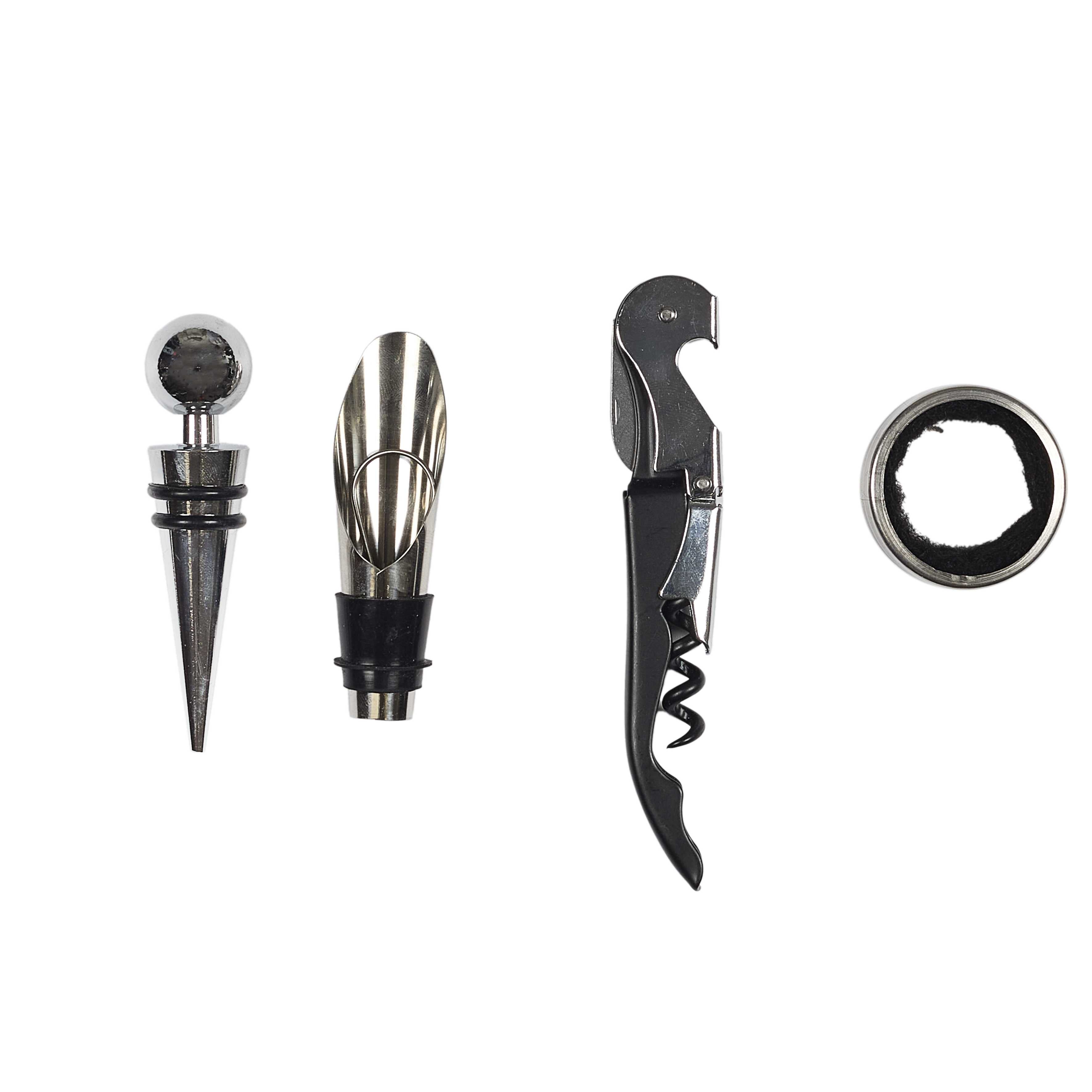 • 4 accessoires de dégustation : tire-bouchon, bague anti-goutte, bouchon, verseur